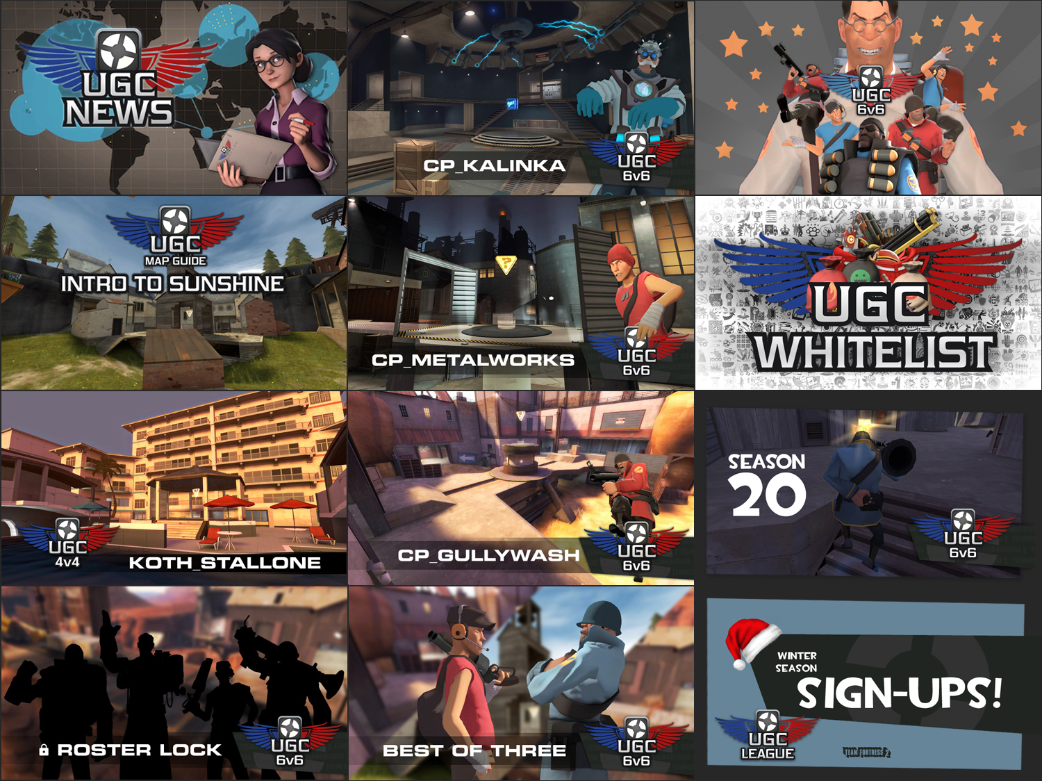 As the Head Admin of UGC's 6v6 League, I was responsible for content. Here are some of the hero images I made for news articles, along with the template I used for my tutorial videos (2nd from the top).